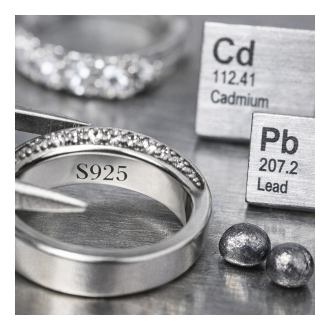 檢驗項目包含:銀含量(XRF / ICP-MS)、鎘、鉛、鎳等重金屬鍍層厚度、不符合標準者直接隔離與退貨