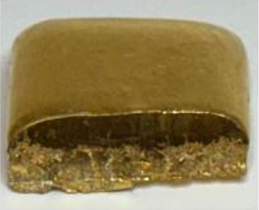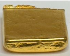 以下案例為黃金回收業者,在店頭不小心回收到鍍金厚且內含錸金的小金豆,不慎與其它純金小金豆熔融成金塊,無論從金塊上正面、光亮面、側面等表面量測到的金含量都高達95%以上,然而,當將金塊切斷,直接量測切斷面時發現,切斷面的金(Au)含量降為80%,同時,錸(Re)含量5.9%,鎢(W)含量10.7%,若非業者在我們的專業建議下,進行切斷面的分析測試,及時察覺異常,否則一塊價值50萬的黃金條塊,參雜16.6%的錸、鎢來魚目混珠,業者將承受至少8萬多元的損失。