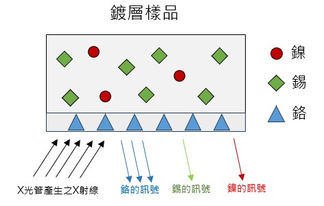 XRF在進行成份分析及有害物質測量時,測量對象以單一均質樣品最為理想,但經過鍍層處理後,樣品變成底材與鍍層的複合結構,在測量時就會造成相應的影響,導致最終呈現的結果與樣品的實際情況有所差異。